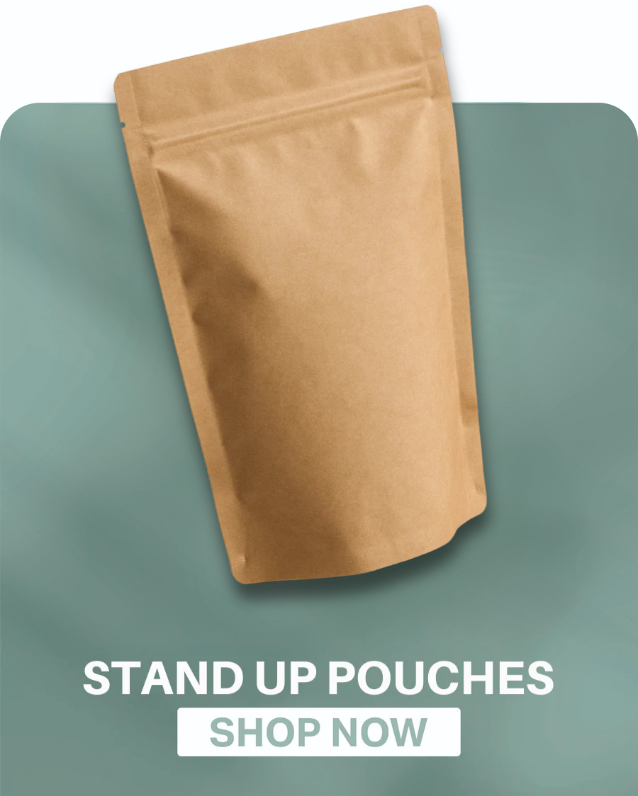 Stand up, flat bottom, retort, spout and kraft paper pouches in stock with fast local dispatch.