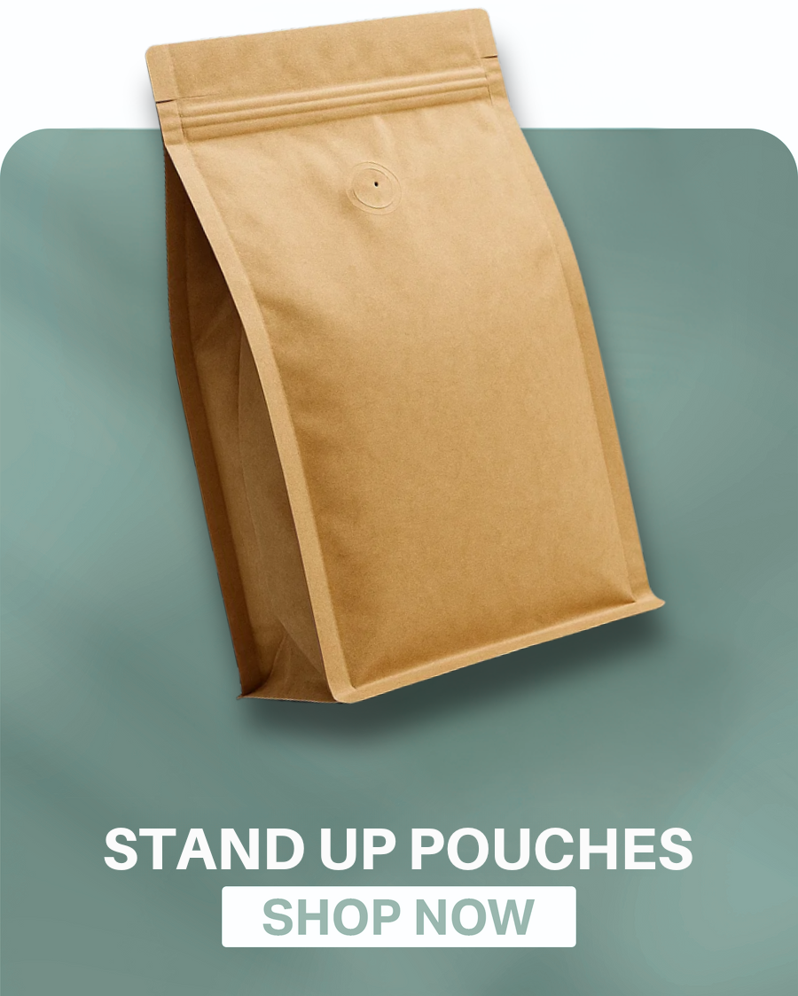 Stand up, flat bottom, retort, spout and kraft paper pouches in stock with fast local dispatch.