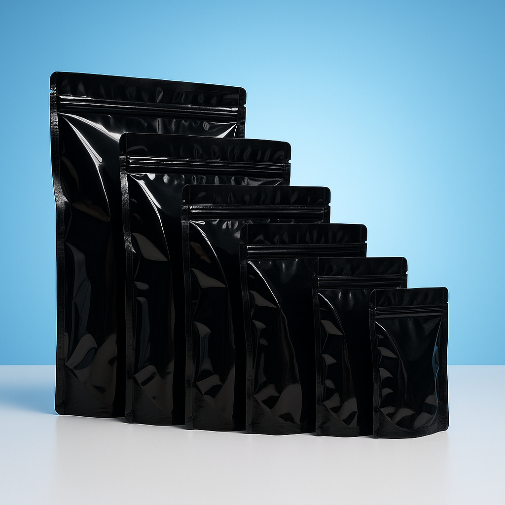 Stand Up Pouch with Zipper Closure- Gloss Black